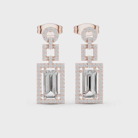 ✨ Emerald Cut Halo Dangle Earrings ✨