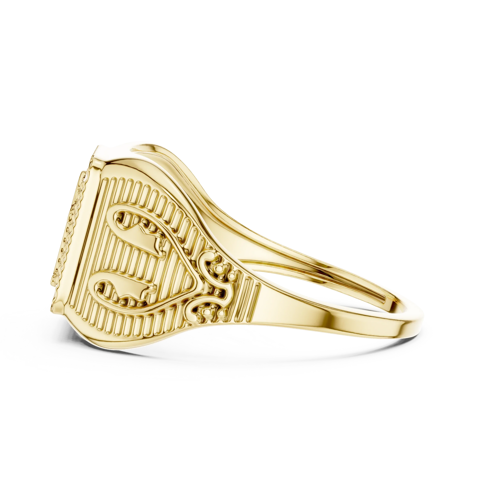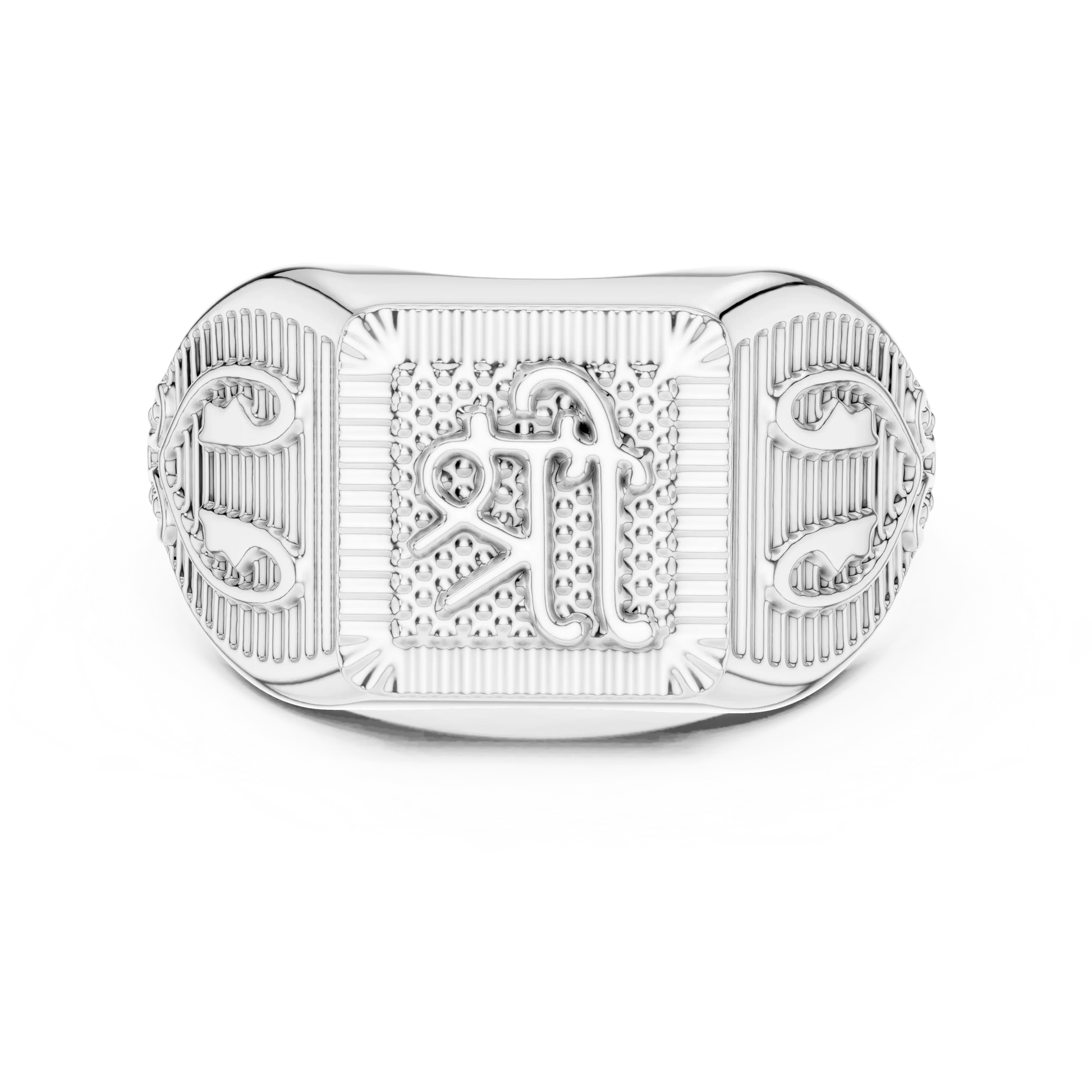 Ornate Rectangular Shri Symbol Signet Ring