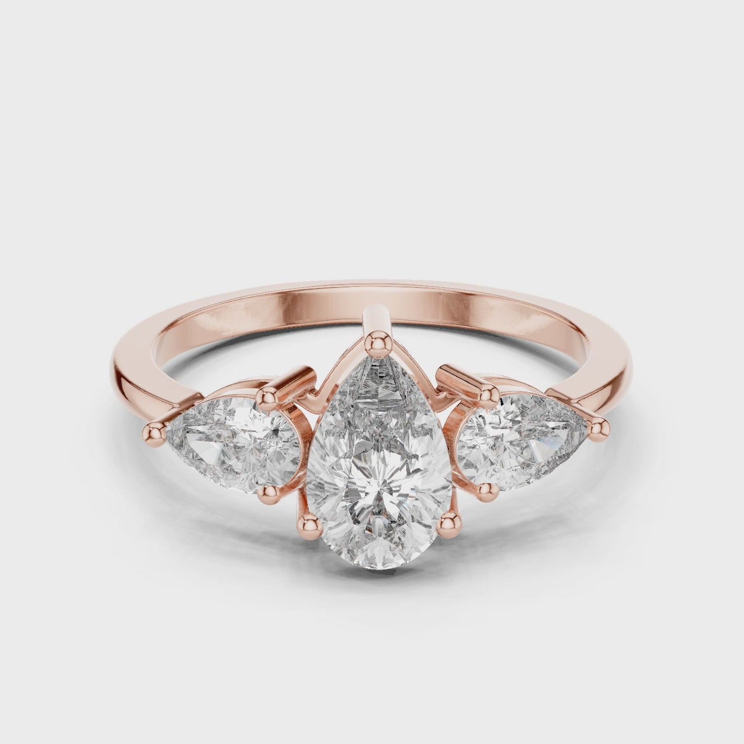 ✦ Stone Weight : 1 Ct Center Stone | 0.5ct Side Pear