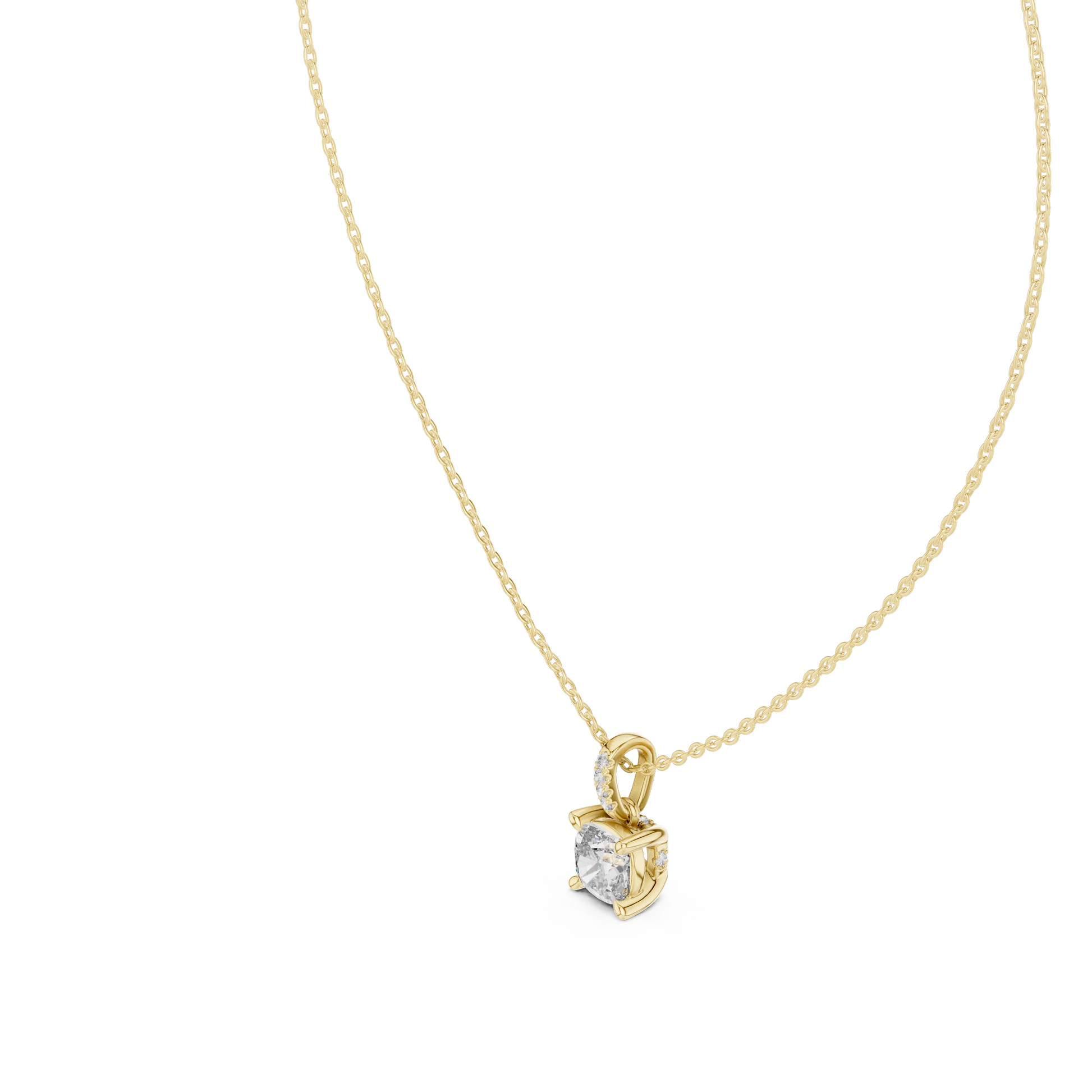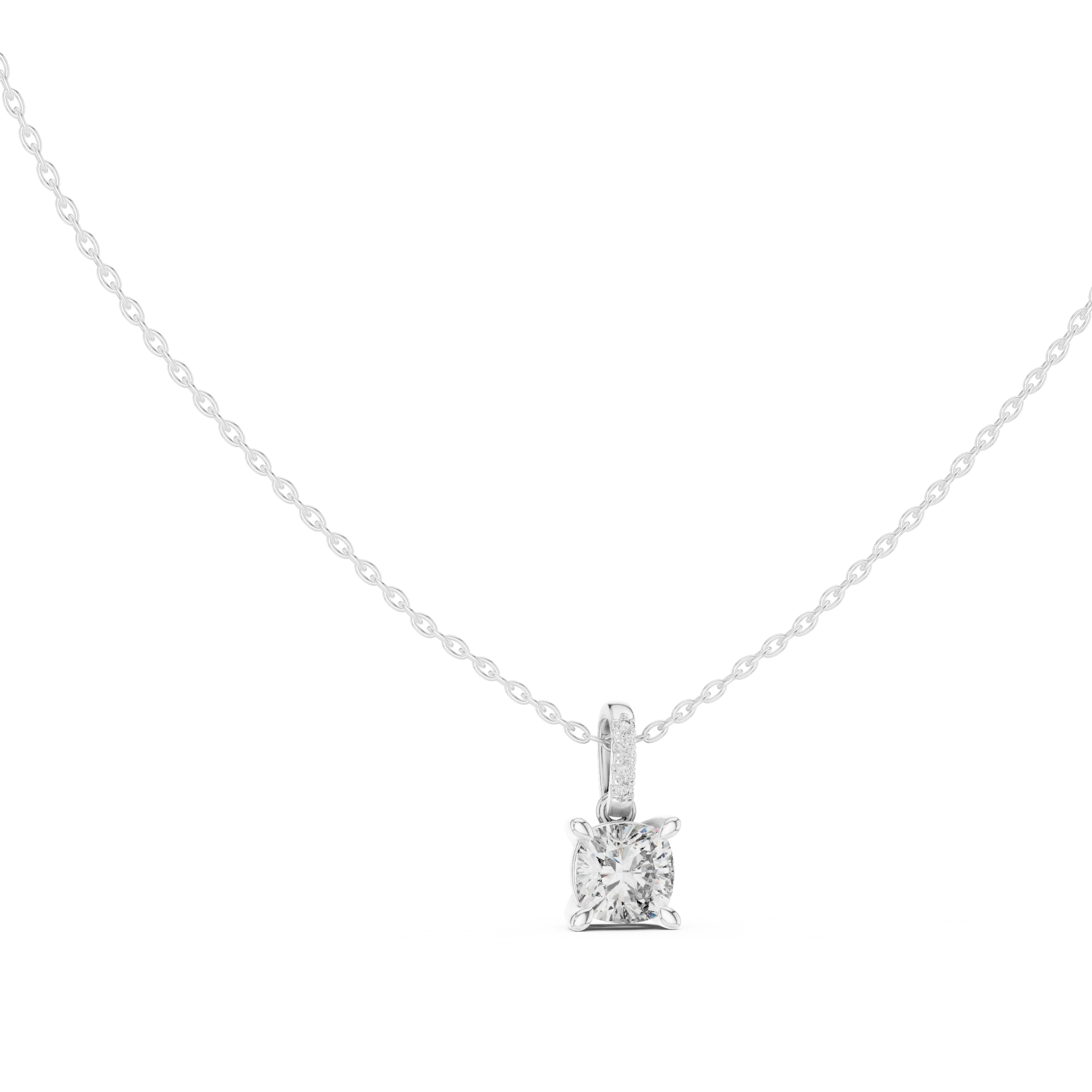 Princess Cut Diamond Solitaire Pendant with Pave Bail