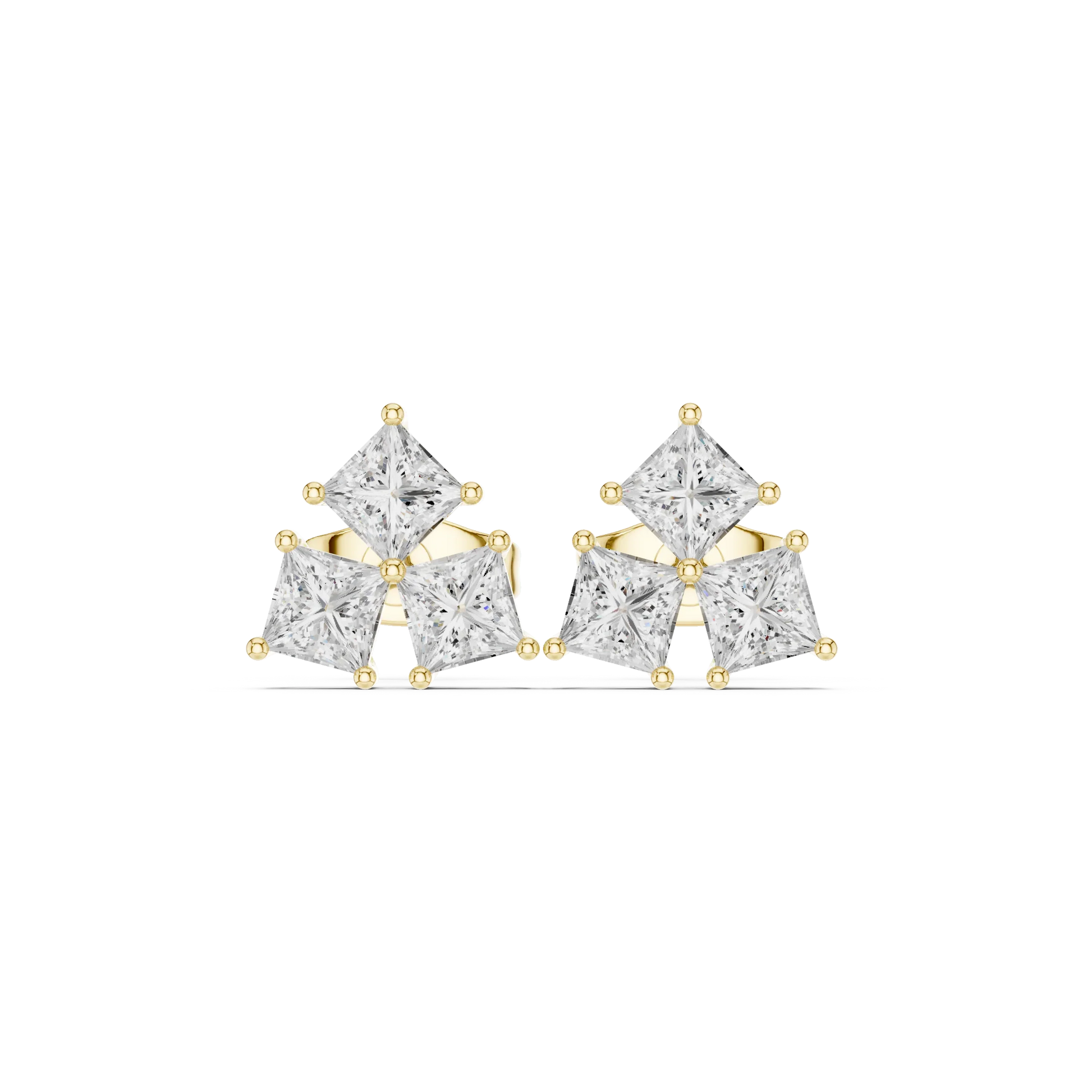 ✨ Three Stone Princess Cut Diamond Stud Earrings ✨